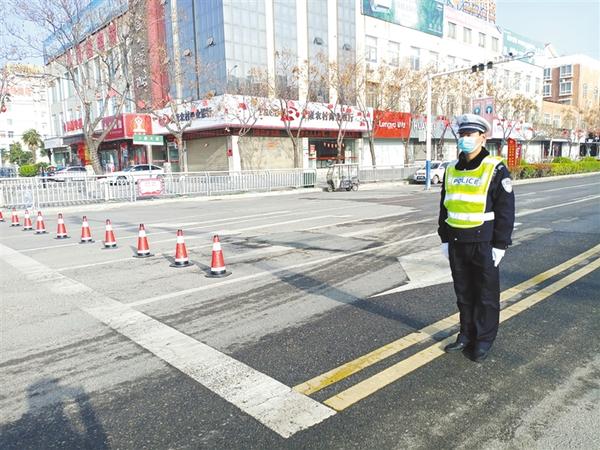 疫情发生以来, 太康县公安局闻令而动,全部警力奔赴防疫一线,开展维持社会稳定和预防违法犯罪工作,帮扶困难群众、接送生活物资,担起了“宣传员”“战斗员”“调解员”“快递员”的角色。县城每个路口都有民警的身影,他们时刻守护着群众的生命健康安全。 记者 张洪涛 摄
