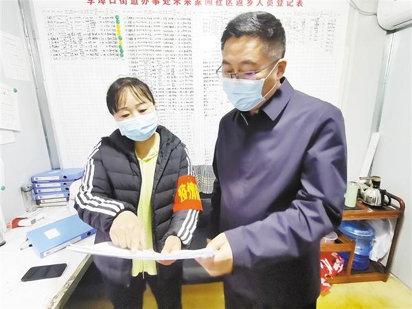 本报讯 (记者王凯 文/图) 3月25日,市疫情防控指挥部第十三督导组组长,市应急管理局党委书记、局长谢超带队到港区督导疫情防控工作,市应急管理局党委委员、副局长李玉祯参加督导。