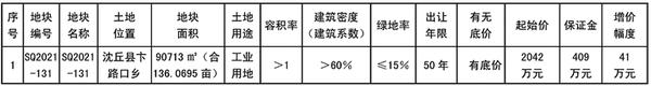 备注: SQ2021-131号:1.宗地“五通一平”(宗地外通路、通电、通讯、通上水、通下水,宗地内土地平整);2.行政办公及生活服务设施用地不得超过工业项目总面积的5%;3.依照河南省政府第200号令,该地块应按照其一次性规划新建或者新增地上总建筑面积的6%比例修建防护级别6级以上防空地下室;4.准入行业:生物智能发电 ;5.由辖区政府负责按时向受让人交付土地。