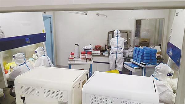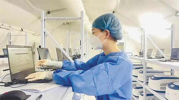 3月26日,1名检验人员支援太康疫情防控方舱核酸检测实验室。