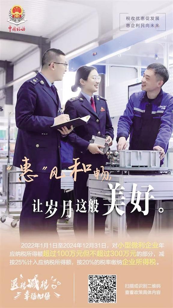 政策内容:对小型微利企业年应纳税所得超过100万元但不超过300万元的部分,减按25%计入应纳税所得额,按20%的税率缴纳企业所得税。