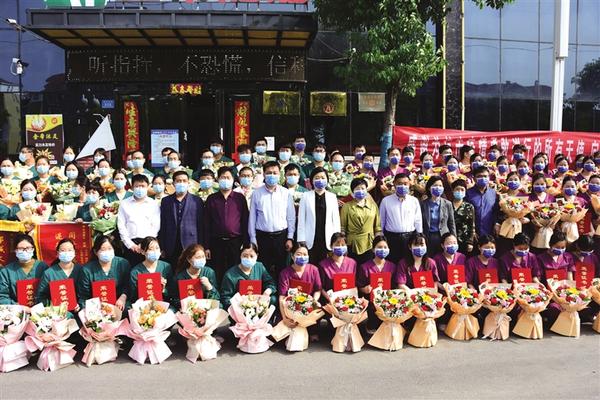 4月27日,郸城县支援太康县的617名医务人员圆满完成任务并集中隔离14天后,全部解除隔离,将陆续回到工作岗位。郸城县政府副县长、县卫健委党组书记牛海燕,县政协副主席、县卫健委主任于健等为“医战队”英雄送上鲜花和祝福。据悉,这些人员分别来自该县四大医健集团和县疾控中心,到太康县从事核酸样本采集、标本转运、实验室检验、隔离病区医疗服务、方舱医务服务、阳性病例转运、流调等工作。