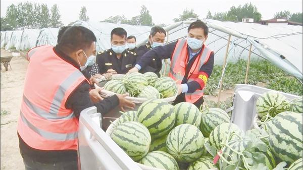 本报讯 (记者 高洪驰 文/图) “镇政府知道这个事后,为我找人、找车、找销路,我非常感谢洪山镇党委政府!”5月12日,沈丘县洪山镇胡老庄村瓜农胡子峰看着已经装车准备外运的西瓜激动地说。