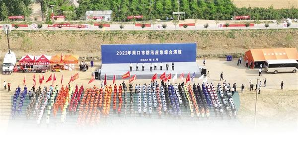 按照市委、市政府的部署,5月24日,市防汛抗旱指挥部在商水县邵庄险工段举行2022年周口市防汛综合应急演练,目的是检验防汛应急预案可行性、可操作性,切实提高防汛指挥调度能力、防汛队伍抢险救援能力、应急保障能力和突发灾害的应急处置能力。演练共6个科目,涉及会商研判、紧急避险、巡堤排险、管涌处理、渗透水处理、护坡抢险、水上救援、城市排涝、抢救伤员等内容,是近年来我市最大规模的一次演练。