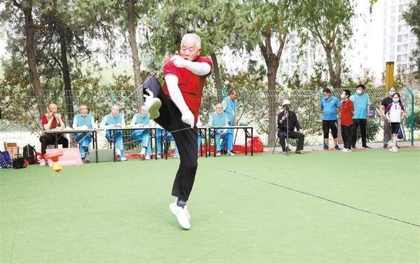 5月28日上午,周口市空竹运动协会在周口人民公园空竹运动场举办2022年全民健身月空竹交流赛。场上,33名参赛选手轮番上阵,纷纷使出看家本领,五颜六色的空竹在空中上下翻飞,一个个精彩动作令人目不暇接。现场气氛热烈,掌声、欢呼声不断。 记者 窦娜 张艳丽 摄