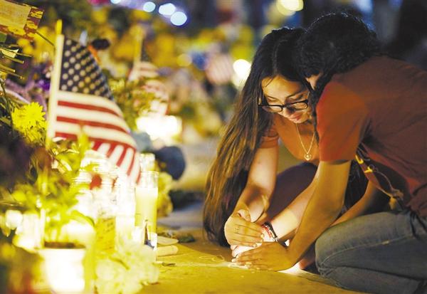 5月29日,在美国得克萨斯州南部尤瓦尔迪市的城市广场,市民为枪击事件遇害者守夜。美国得克萨斯州南部尤瓦尔迪市5月24日发生恶性校园枪击事件,造成至少19名儿童和2名教师死亡。这是美国近十年来遇害人数最多的一起校园枪击事件。新华社记者 吴晓凌 摄