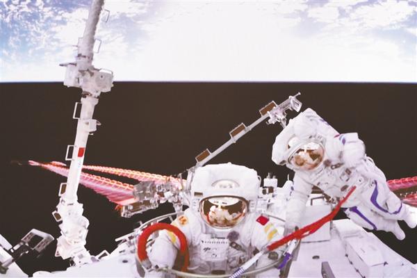 记者从中国载人航天工程办公室获悉,9月2日0时33分,经过约6小时的出舱活动,神舟十四号航天员陈冬、刘洋、蔡旭哲密切协同,完成出舱活动期间全部既定任务,陈冬、刘洋已安全返回问天实验舱,出舱活动取得圆满成功。新华社发