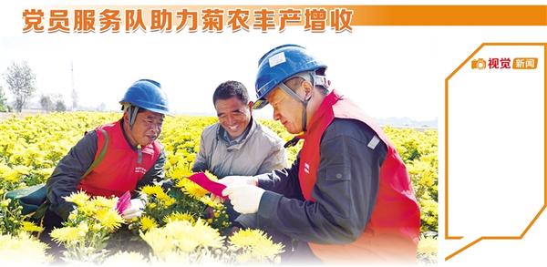 秋高气爽、菊花飘香,时下正值菊花采收季节。10月20日,太康县供电公司焦裕禄共产党员服务队来到五里口乡菊花种植基地宣传安全用电知识,为客户检查用电设备,了解用电需求,用优质服务助力菊农丰产增收。 记者 张洪涛 摄