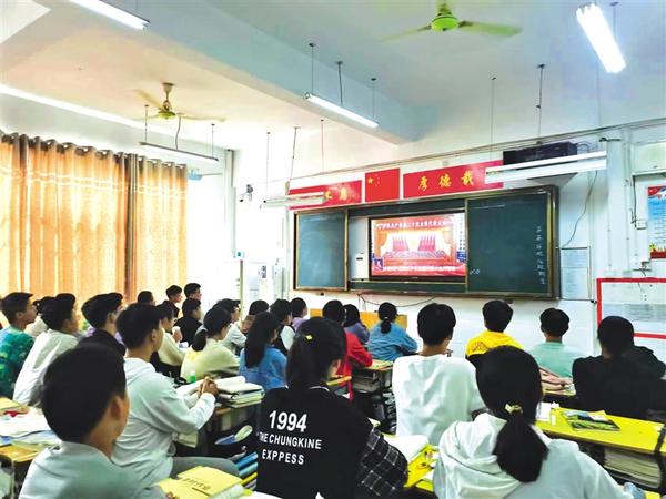 10月16日上午,淮阳区组织广大师生收看党的二十大开幕会实况直播,聆听大会报告。记者 侯俊豫 摄