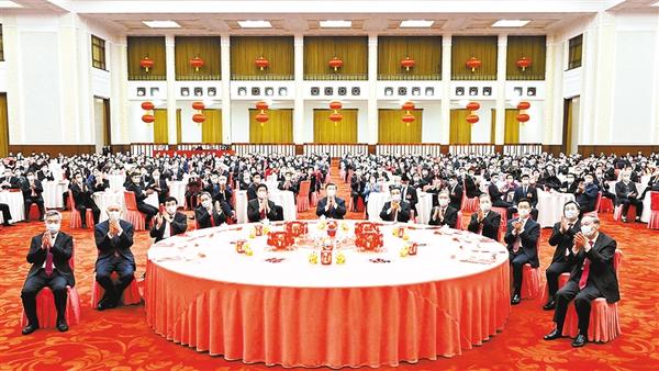 1月20日,中共中央、国务院在北京人民大会堂举行2023年春节团拜会。党和国家领导人习近平、李克强、栗战书、汪洋、李强、赵乐际、王沪宁、韩正、蔡奇、丁薛祥、李希、王岐山等同首都各界人士齐聚一堂、共迎新春。 新华社记者 谢环驰 摄