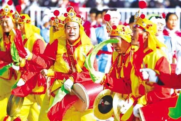 2月5日,在甘肃省白银市举办的社火展演上,民间社火队的演员在表演。新华社发