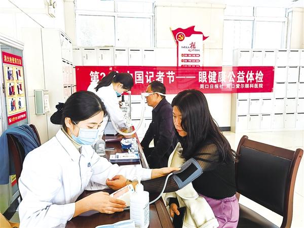 11月8日,是第24个中国记者节。当日,周口爱尔眼科医院工作人员来到周口日报社,为奋战在一线的新闻工作者进行眼健康公益体检。