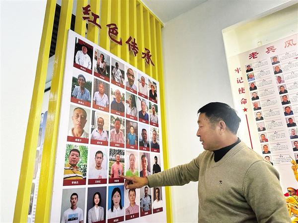 今年以来,艾岗乡半截楼村充分挖掘红色文化资源,以文化振兴赋能乡村振兴。图为近日该村党支部书记李校红向记者介绍当地红色基因传承人。记者 张猛 孙靖 摄
