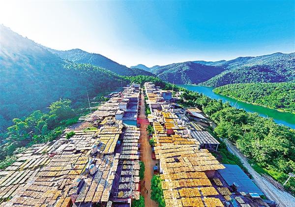 时下正是广西百色市田林县六隆镇晾晒八渡笋的季节,金秋的山村一派丰收景象。