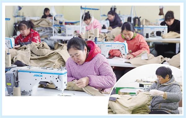 针对周边众多农村妇女因需照料年幼子女或年迈双亲而缺乏稳定经济来源的现状,淮阳区大连乡沙堡屯村的张来、宋凤梅夫妇于2018年在家乡创办旺莱制衣厂。这一举措为周边40余名居家妇女创造了就业机会,使她们每月能获得约3000元的收入,为推动乡村振兴贡献了力量。图为在旺莱制衣厂车间忙碌的工人。记者 刘俊涛 摄