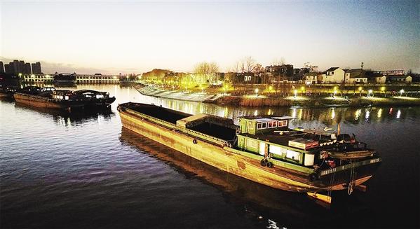 1月15日晚上,在中心城区三川交汇处,几艘货船停泊在沙颍河上。夜色、波光、船影和附近的大渡口、菩提门、周口大闸构成美仑美奂的风景。
