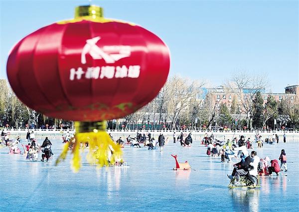 当日上午北京天气晴好,许多游客来到什刹海冰场体验冰车、冰上自行车等运动游乐项目,乐享冰趣。新华社记者 张晨霖 摄