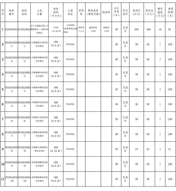 一、拍卖地块的基本情况和规划指标要求(详情见表格)