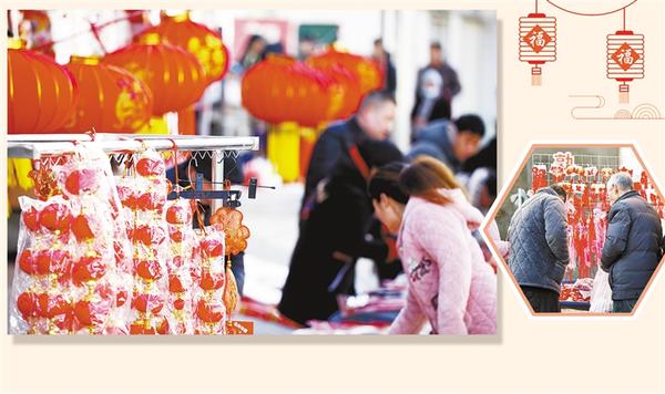 1月27日,淮阳李集乡村大集上人声鼎沸、热闹非凡,人们从四面八方赶来置办年货,迎接即将到来的蛇年新春。图为群众正在挑选喜爱的新春饰品。