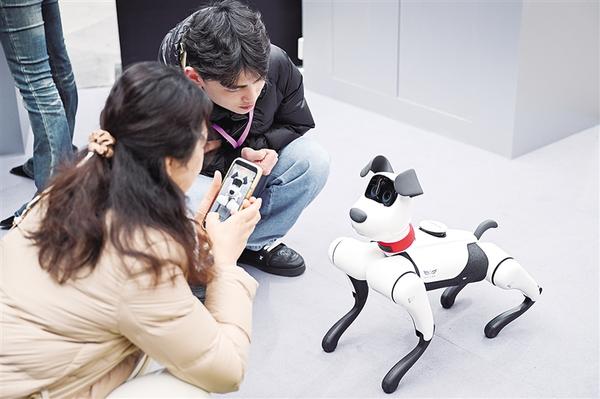 2月21日,观众在2025全球开发者先锋大会现场与机器狗互动。 2月21日至23日,以“模塑全球 无限可能”为主题的2025全球开发者先锋大会在上海举办。据悉,全球开发者先锋大会源自世界人工智能大会,定位为开发者“社区的社区”,已举办两届。 新华社发(陈浩明 摄)