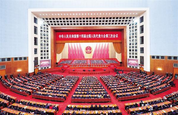 下午3时30分,李鸿忠宣布:中华人民共和国第十四届全国人民代表大会第三次会议闭幕。大会在雄壮的国歌声中结束。