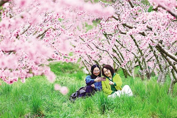 4月1日,游客在重庆市黔江区濯水镇乌杨社区黄桃基地赏花游玩。 北宋文学家欧阳修的《采桑子·清明上巳西湖好》描写了上巳、清明时节人们在颍州西湖踏青游春的热闹景象。农历三月初,春暖花开,天朗气清,惠风和畅,人们出游踏青,尽享春光。 新华社发(杨敏 摄)