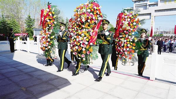 当日9时许,在县烈士陵园庄严肃穆的革命烈士纪念碑前,全体人员整齐列队,庄严肃立,向保卫家乡、保卫祖国而献出生命的英烈默哀,并行鞠躬礼。在中华人民共和国国歌声中,仪仗队向革命先烈敬献花篮。学生代表高唱《我们是共产主义接班人》。随后,全体人员缓步绕行,瞻仰革命烈士纪念碑,并敬献鲜花,表达对革命先烈的深切缅怀和崇高敬意。