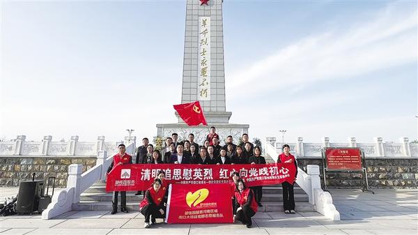 清明节前夕,市城乡一体化示范区各级各部门积极组织开展祭扫活动,缅怀革命先烈,重温红色历史,进一步激发党员干部的责任感和使命感。图为碧桂园社区党员干部在市烈士陵园革命烈士纪念碑前合影留念。 记者 姬慧洋 通讯员 姚远 张贝贝 摄