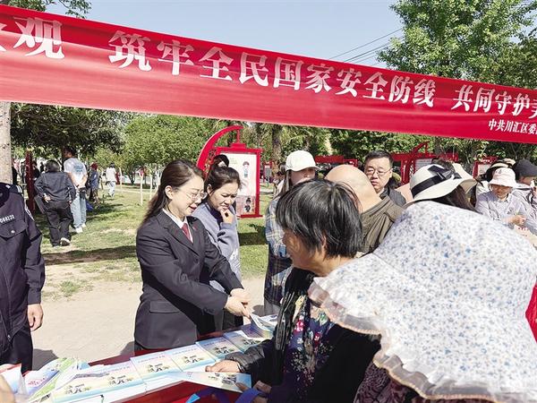 图二:为增强全民国家安全意识、树牢总体国家安全观,4月15日,川汇区人民检察院干警深入基层,开展第十个全民国家安全教育日宣传活动。图为检察干警向群众发放宣传资料。通讯员 范闻鑫 摄