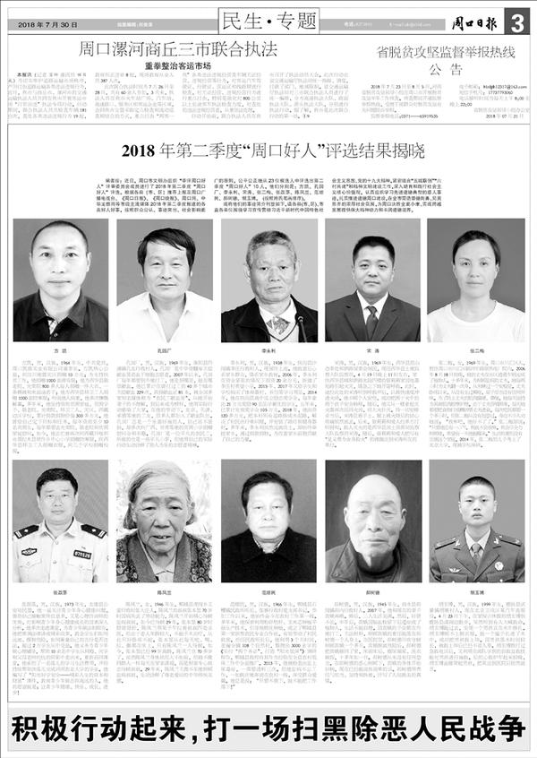 2018年第二季度“周口好人”评选结果揭晓