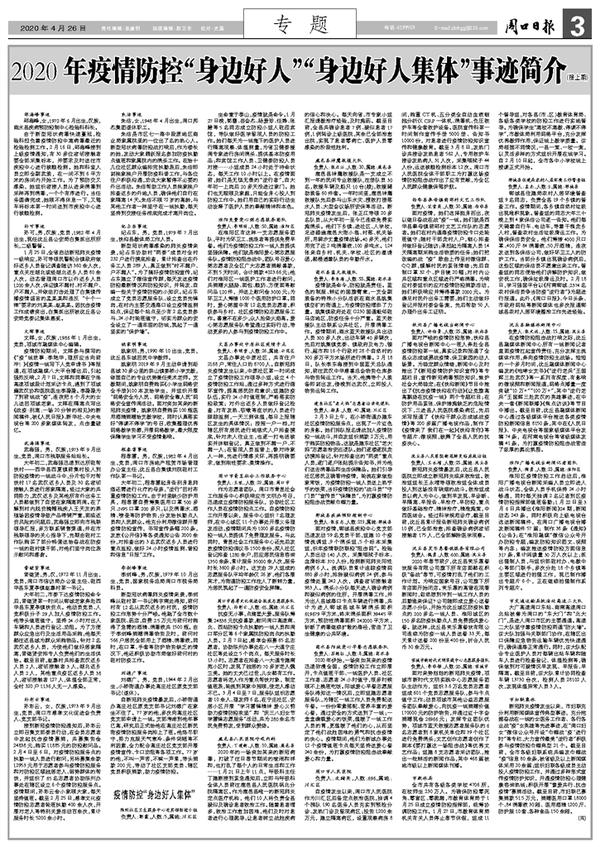 2020年疫情防控“身边好人”“身边好人集体”事迹简介(接上期)