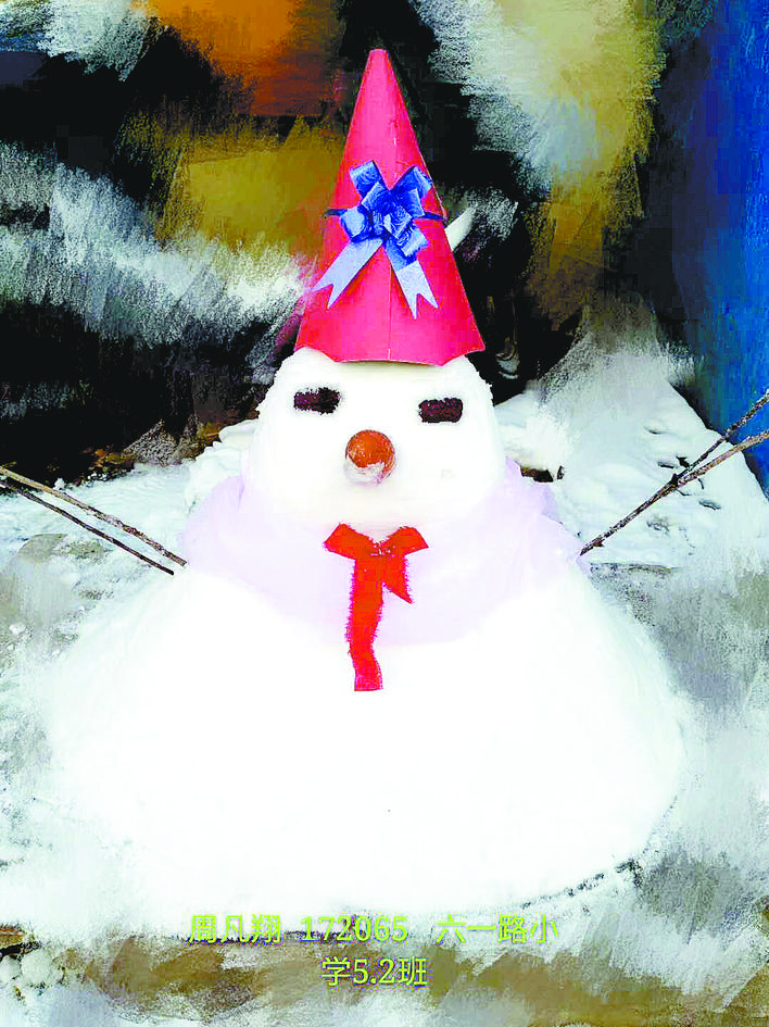 2018年元旦刚过就迎来初雪,1月3日,本报推出“童真童趣 个性雪人”堆雪人活动,小记者发动自己的奇思妙想,堆出了有个性的创意雪人,本期推出部分作品(其他详见小记者微信公众号)。