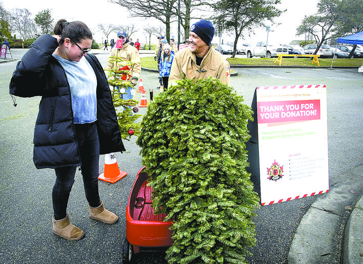 当地时间1月6日,在加拿大里士满市,消防员协助当地居民回收圣诞树。当日,数十名消防员参加一年一度的回收圣诞树慈善活动。回收的圣诞树会被机器碎成木渣和木屑,用作堆肥或者种植用复合土。新华社发