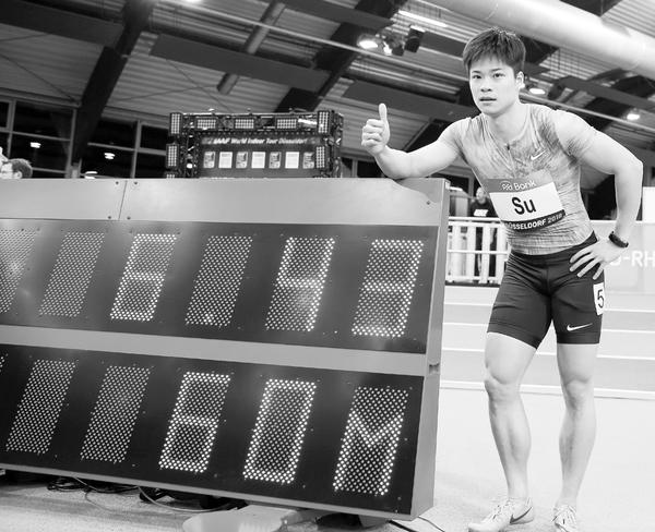 新华社柏林2月6日电 据国际田联6日消息,在德国杜塞尔多夫周二举行的2018国际田联世界室内巡回赛男子60米决赛中,中国选手苏炳添以6秒43的成绩打破亚洲纪录夺冠。