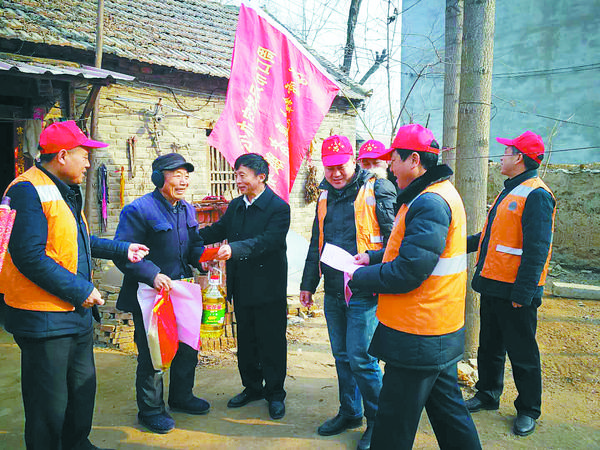 本报讯 “过大年,挂灯笼,贴春联”,是中华民族的传统习俗。为了弘扬传统文化,营造春节喜庆祥和的节日气氛,推动社会主义核心价值观融入百姓节日生活,2月9日,周口市人防办主要负责人带领学雷锋志愿者来到他们的帮扶村——淮阳县葛店乡徐集行政村,组织开展“赠春联 挂灯笼 送温暖”活动。