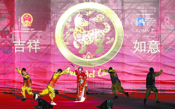 当地时间2月10日,在意大利罗马,演员表演婺剧“抬花轿”。当日,“欢乐春节”庆祝活动在意大利罗马举行,舞龙游行、文艺演出等活动吸引意大利市民及游客观看。