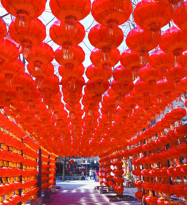 这是2月10日在河北省石家庄市平山县红崖古镇拍摄的红灯笼。为期一个月的第二届“平山喜乐年”活动目前正在石家庄红崖古镇举行,平山县的民间庆祝活动在古镇里循环上演,喜迎新年到来。新华社记者 张秀科 摄