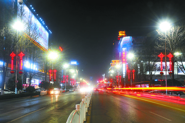 春节到了,街头年味正浓,周口的夜色流光溢彩。夜幕降临,城市的活力被各式各样的灯光所点燃,展现出绚烂喜庆的节日氛围。