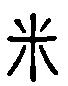 “米”字的甲骨文写作 。字中的六点,代表米粒的象形。字中的一横,有学者认为代表粮食放置的间隔;有学者认为以一横将米与沙粒、水滴相区别;有学者认为“一”表示将米粒连结在一起的意思。后来中间一横逐渐被“十”字代替,表示米粒四周散放、纵横琐碎之状。“米”的本义为去皮后的粮食作物的子实,后多指稻米。《说文》:“米,粟实也。象禾实之形。”