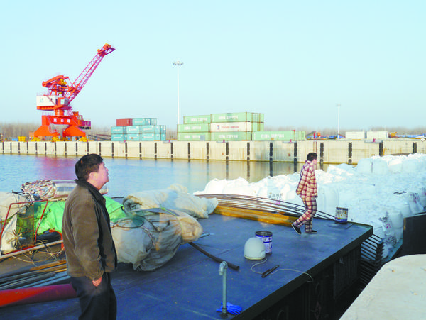 记者采访时,钮先生正等待最后两车货物运抵周口港,装载完后他将顺着沙颍河驶入淮河、长江,然后进入京杭大运河,最后把货物送到江苏东台市。