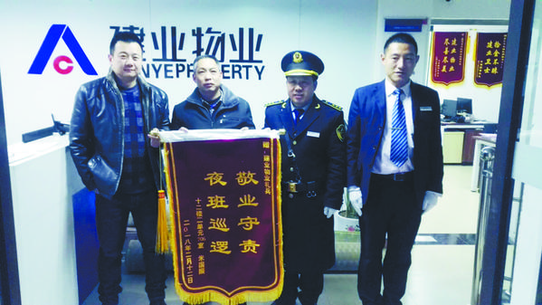 周口建业森林半岛小区春节装扮得很喜庆,大门口成排的红灯笼、单元门上的福字显现出浓厚的节日氛围。该小区的建业物业工作人员在节日期间一直坚守岗位、尽职尽责。为保障春节期间周口建业森林半岛小区的安全,建业物业“礼兵”加强了门岗把守,加大了巡逻力度,一句“新年好”是他们为每一位进出的业主送上的新年问候。春节期间,走亲访友人员大量增加,建业物业的“礼兵”积极帮助业主搬运物品。亲朋好友聚会增多,饭局频繁,遇到酒醉回家的业主,建业物业的“礼兵”都会细心照顾并安全送至家中。不止周口建业森林半岛小区,在鹿邑建业城小区,有业主酒精中毒,打建业物业电话求助,建业物业在接到求助电话后第一时间赶到业主家中并把业主送至医院就医,保证了业主的生命安全,业主痊愈后特送锦旗表示感谢(如图)。