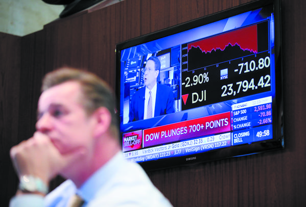 当日,纽约股市三大股指收盘下跌。截至当日收盘,道琼斯工业平均指数比前一交易日下跌572.46点,收于23932.76点,跌幅为2.34%。标准普尔500种股票指数下跌58.37点,收于2604.47点,跌幅为2.19%。纳斯达克综合指数下跌161.44点,收于6915.11点,跌幅为2.28%。
