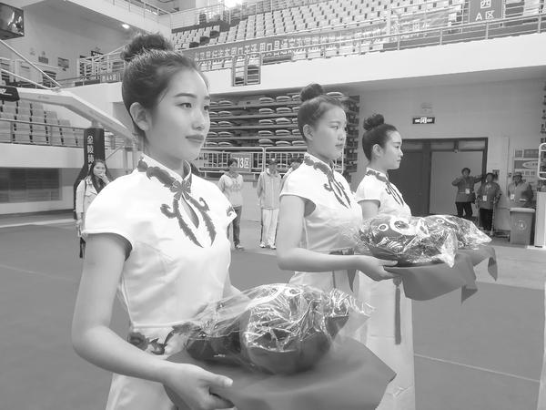 本届省运会首场比赛结束后,13名礼仪志愿者身着量身订制的礼服出现在大家面前时,在场的所有人都被她们的风采折服。这13名礼仪志愿者分别从事礼仪引导、吉祥物“泥娃”递送、颁奖等工作。