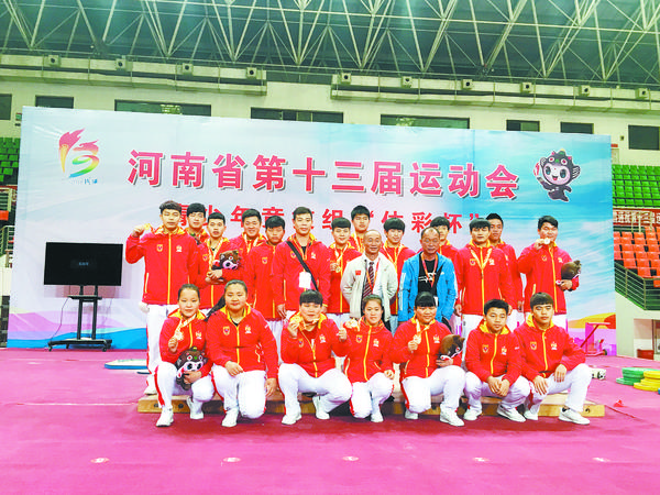 图为周口举重队教练员们和部分获奖运动员在举重项目落下帷幕后合影留念。记者 王凯 摄