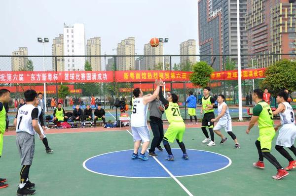 为了迎接省十三运会在周口举办,广泛开展全民健身运动,进一步增强市民的健身意识和身体素质,4月14日上午,周口第六届“东方新粤”杯男子篮球赛在周口市体育中心开赛,来自全市的10支代表队将在赛场上一决高下。据了解,整个赛事分A、B两个小组对决,比赛时间共4天,分别为4月14日、4月15日、4月21日、4月22日。记者 张志新 摄