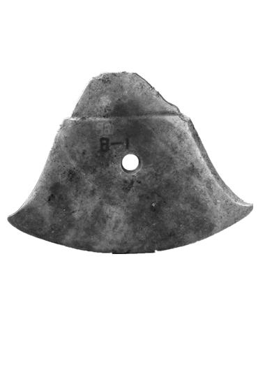 青玉鸟。青白色,半透明。呈三角形,玉质较好,用不规则玉片加工而成。头短而宽,中部单面钻一孔作眼,短肩喙,大尾向下,粗腿直立,鸟身阴线刻不连贯的平行线纹。高3.8厘米,厚0.5厘米。