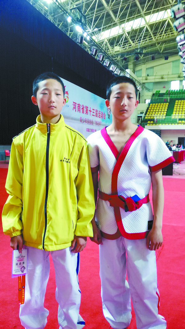 走下赛场,记者见到这对双胞胎兄弟时,才得知穿红色队服的王文博是哥哥,穿蓝色队服的王文硕是弟弟。他们今年14岁,来自郑州代表队。