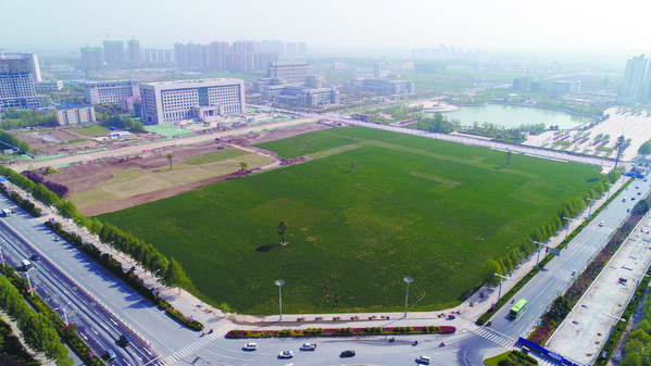 4月17日,在周口东新区周口大道与文昌大道交叉口东北角,昔日的棚户区如今脱胎换骨,一个数万平方米的高标准草坪正在紧张铺设中,满眼绿色扑面而来,令人心旷神怡。去年下半年以来,东新区乘百城建设提质工程东风,征迁和建设步伐加快,变化日新月异,呈现出高楼林立、道路平整、功能齐全、环境优美的现代化城市面貌。