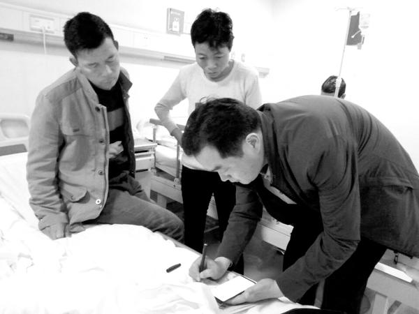 4月24日,市质量技术监督局驻商水县谭庄镇焦城行政村第一书记赵海岭带着该村准脱贫户吴春华到市中心医院求医。