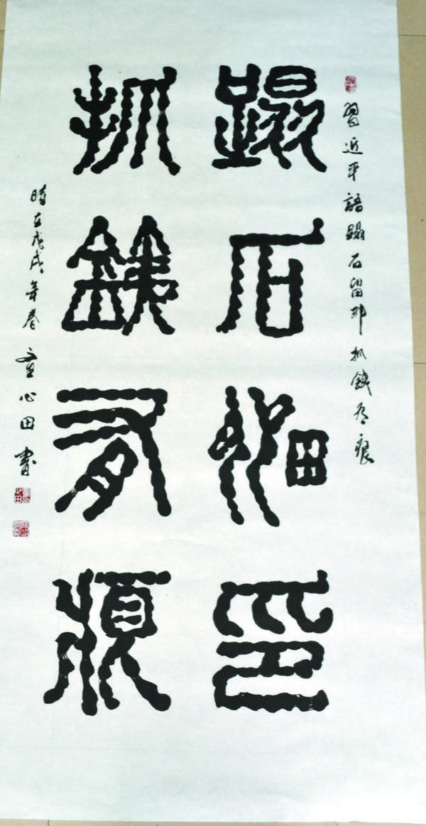 童心田历经几十年辛苦探索,执着追求,创造出中国书法界独一无二、独具特色的书法风格,国家新闻出版署及版权保护中心批复其书法为童式书法,并给以专利保护。